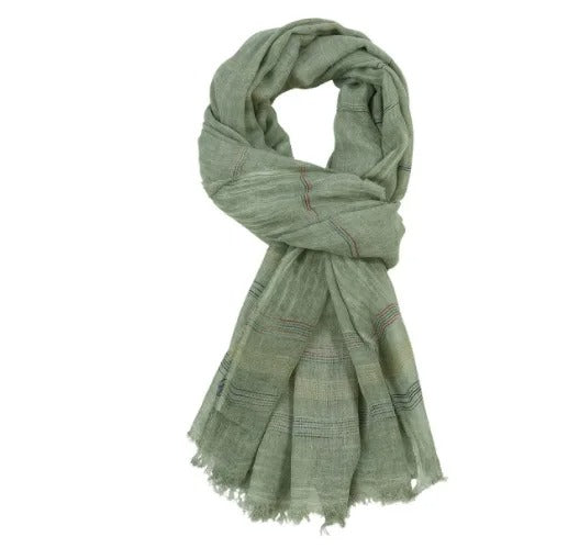 Elevate your look with this men’s cotton linen scarf, designed with a yarn-dyed striped pattern and elegant tassel finish. Lightweight yet warm, it’s perfect for autumn and winter wear, keeping you stylish and comfortable in any setting.