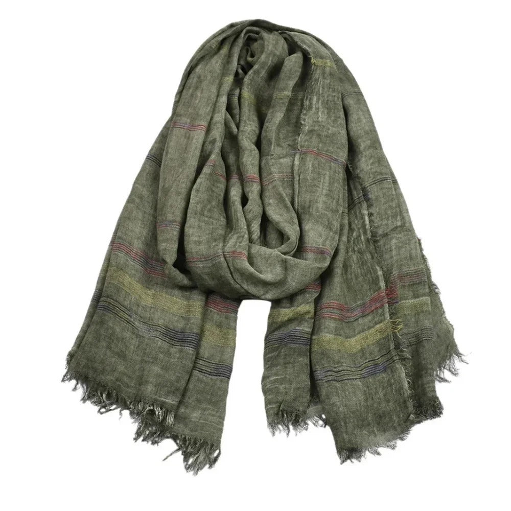 Men’s Cotton Linen Scarf Striped Tassel Winter Fashion Shawl