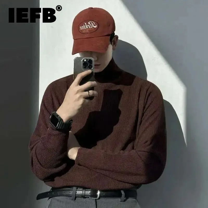 Korean Style Men's Turtleneck Knitted Sweater Solid Color Pullover