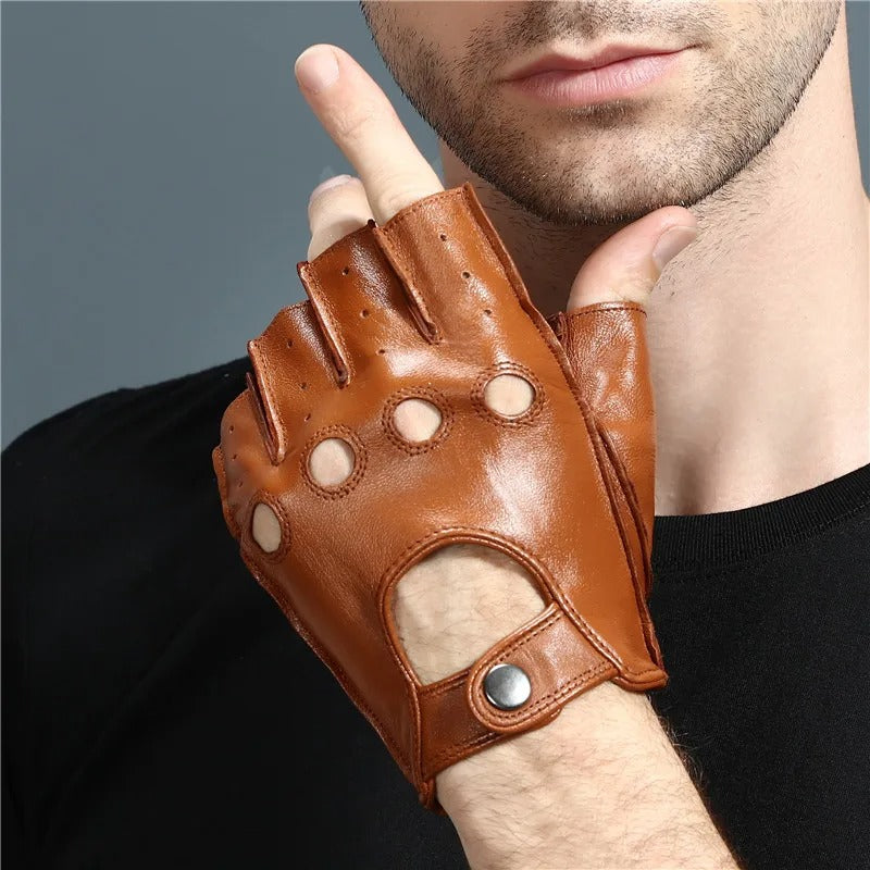 Men’s Half Finger Leather Gloves Breathable Non-Slip Driving Fitness