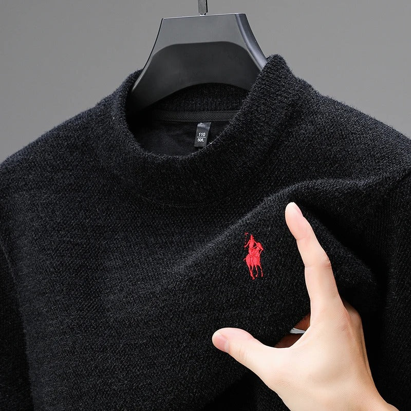 Men’s Luxury Velvet Embroidered Sweater Thick Winter Knit Pullover