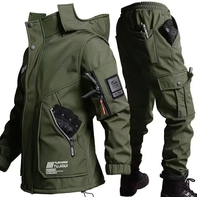 Men’s Motorcycle Jacket Winter Velvet Waterproof Riding Training Set