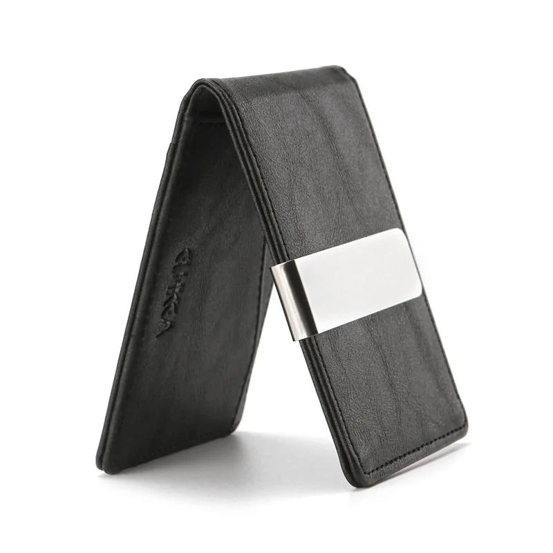 Men’s Slim Leather Money Clip Wallet with Metal Cash Holder