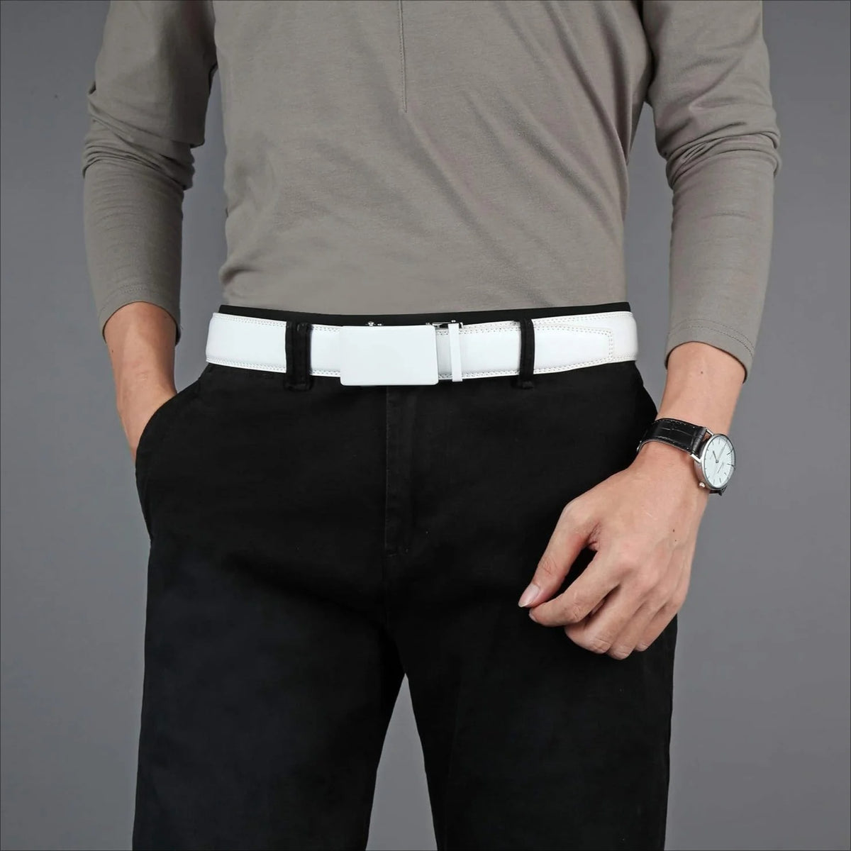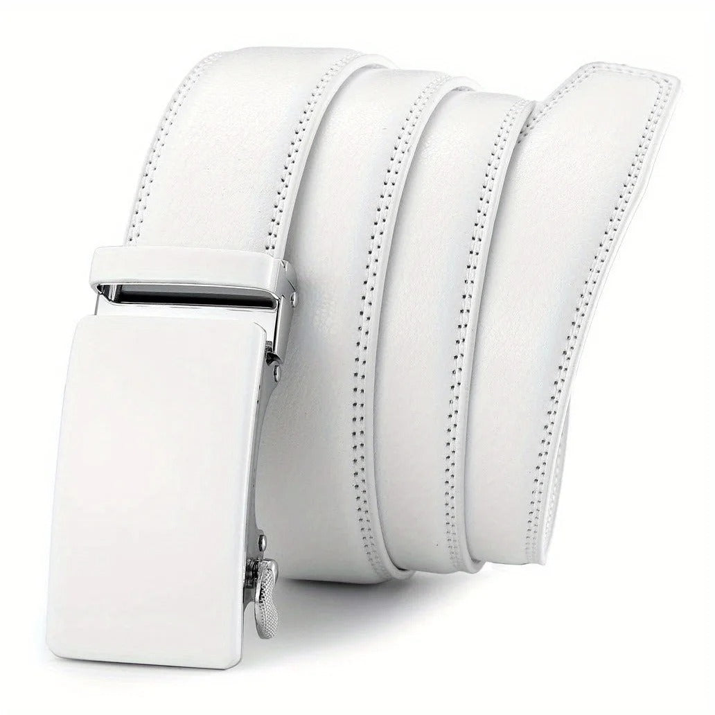 Men’s White Leather Ratchet Belt Automatic Buckle Dress Accessory