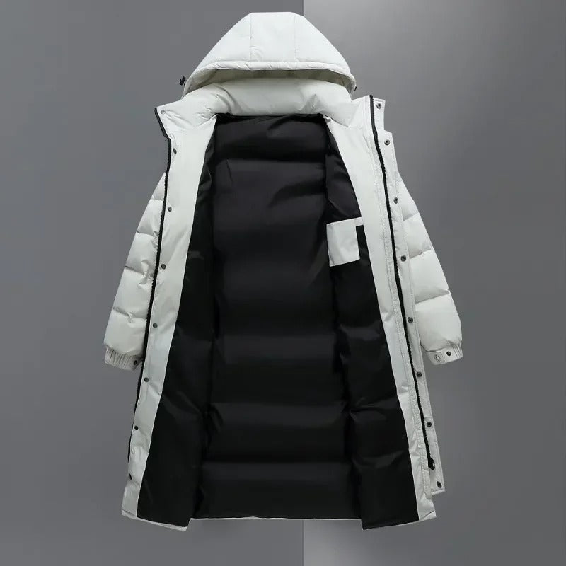 Men’s Long Hooded Puffer Jacket Warm Duck Down Coat