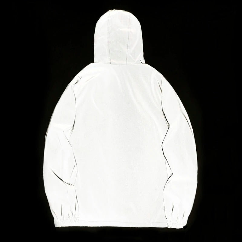 Men’s Reflective Hooded Jacket Waterproof Windbreaker Hip Hop Outwear