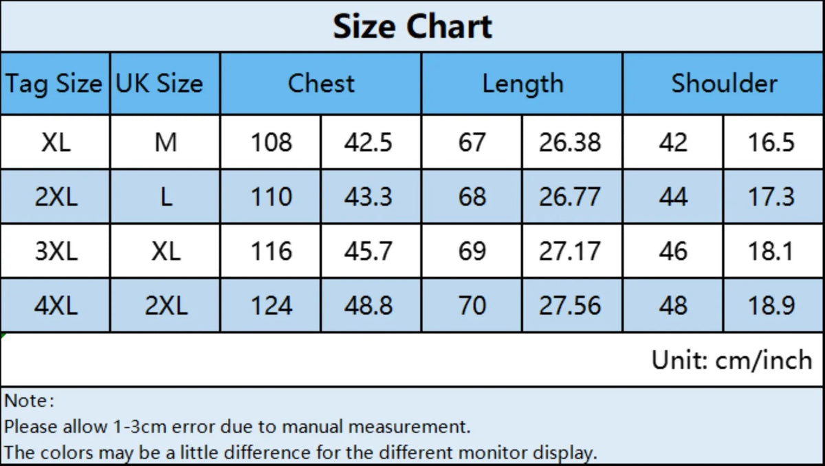 Wide Size Range (S–6XL) – Fits a variety of body types.