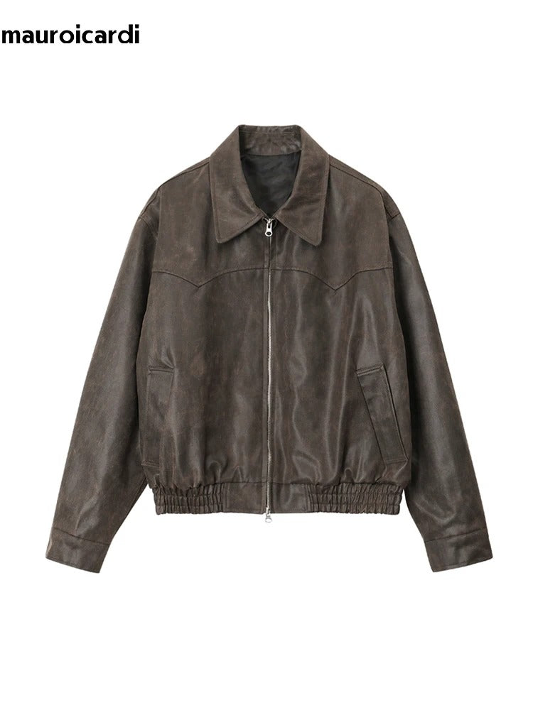 Men’s Vintage Washed PU Leather Jacket Casual Lightweight Coat