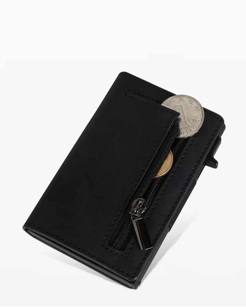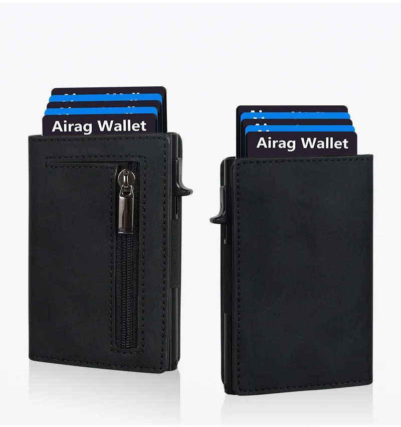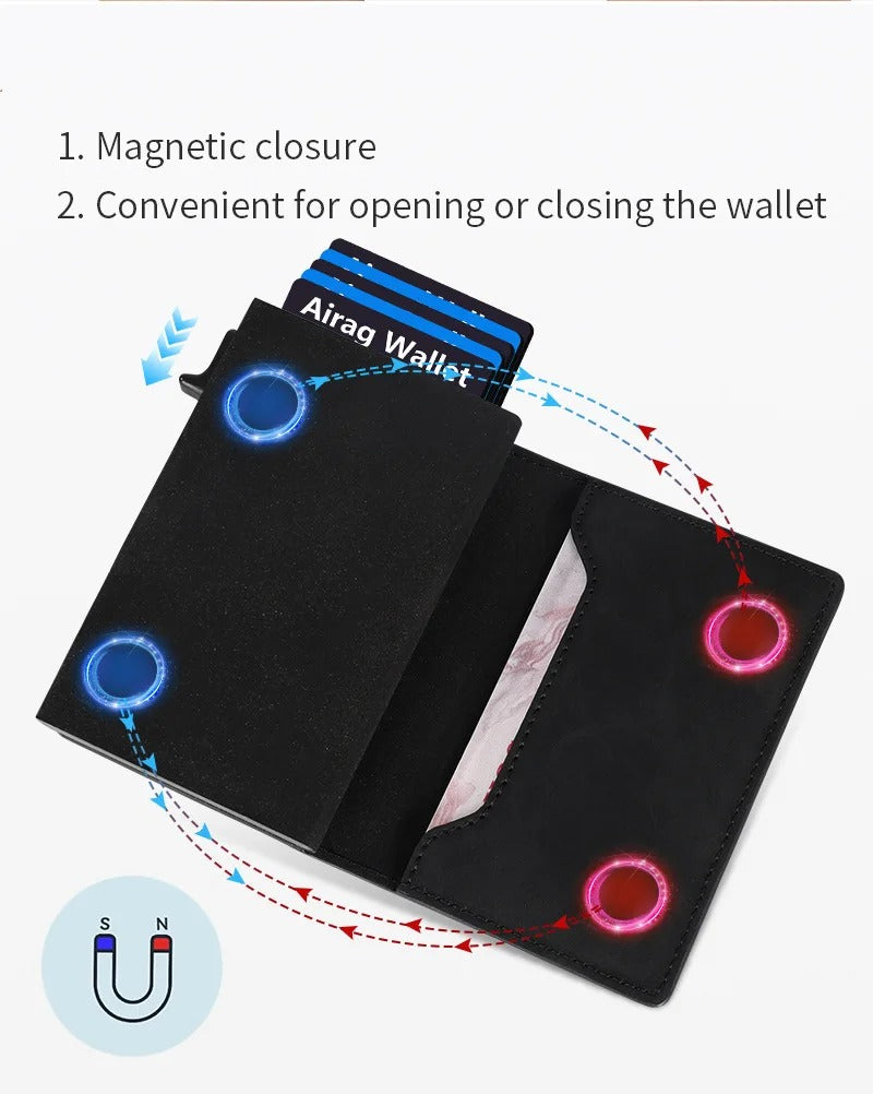 The innovative pop-up card ejection system allows instant access to your most-used cards with a simple push, while the magnetic closure keeps everything securely in place. Despite its slim profile, it accommodates multiple cards, folded cash, and IDs without bulk — making it perfect for business, travel, or daily use.