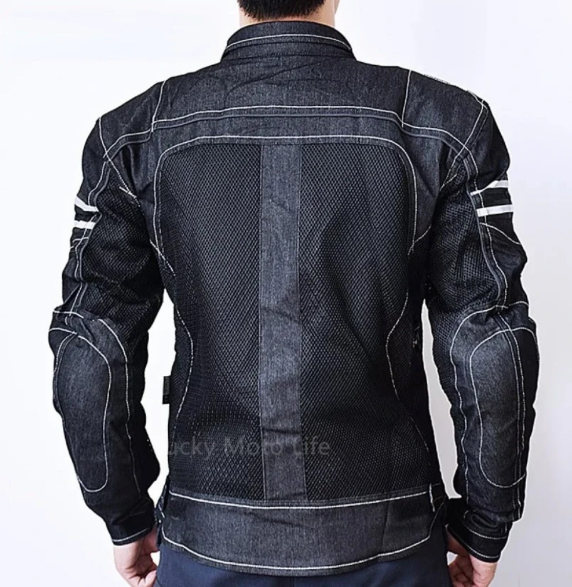 Men Motorcycle Jacket Breathable Denim Mesh Protective Riding Gear