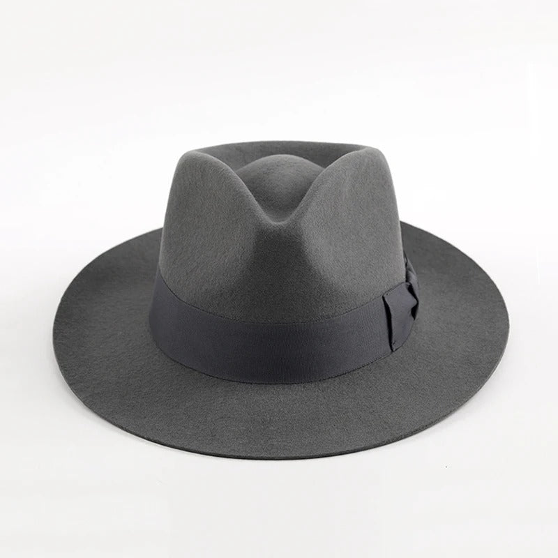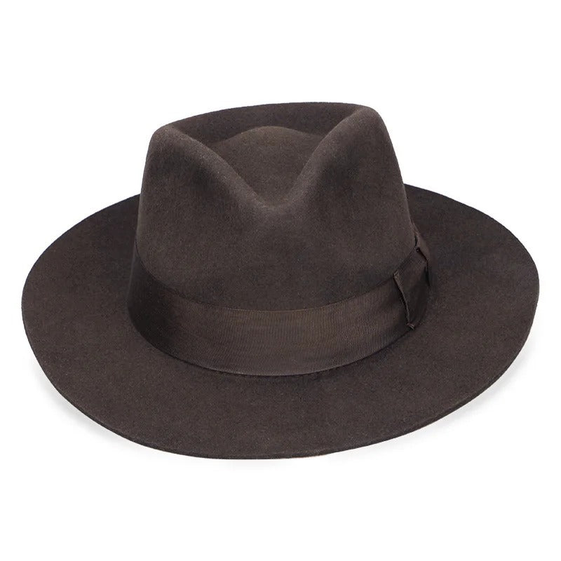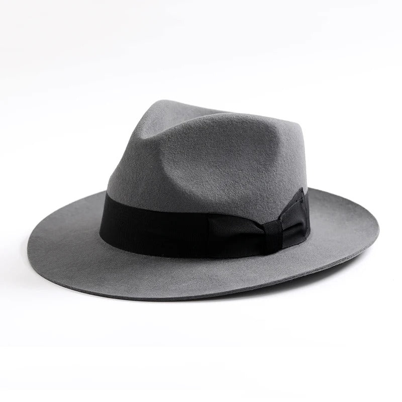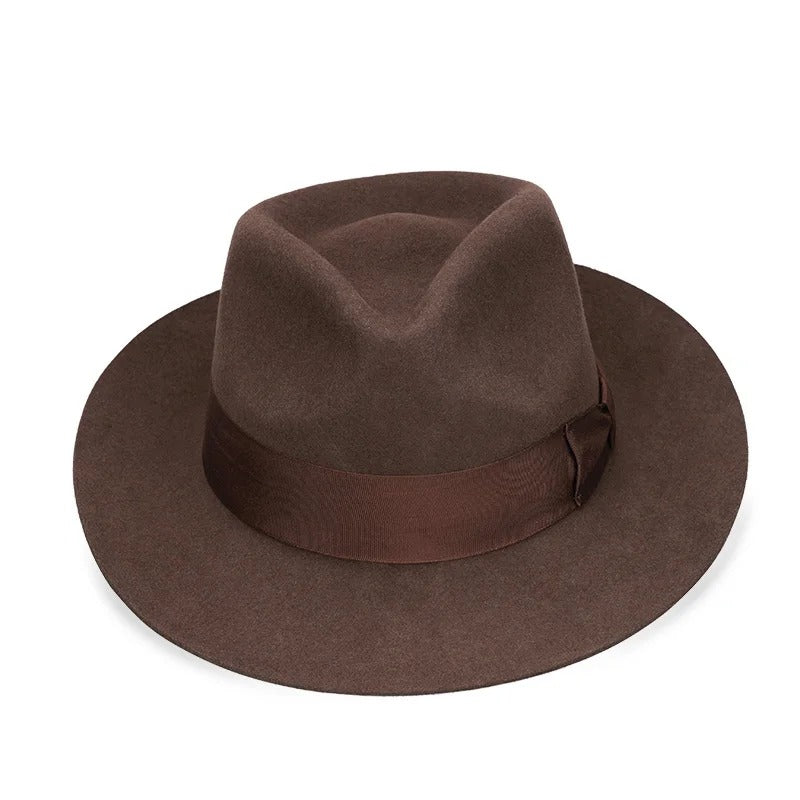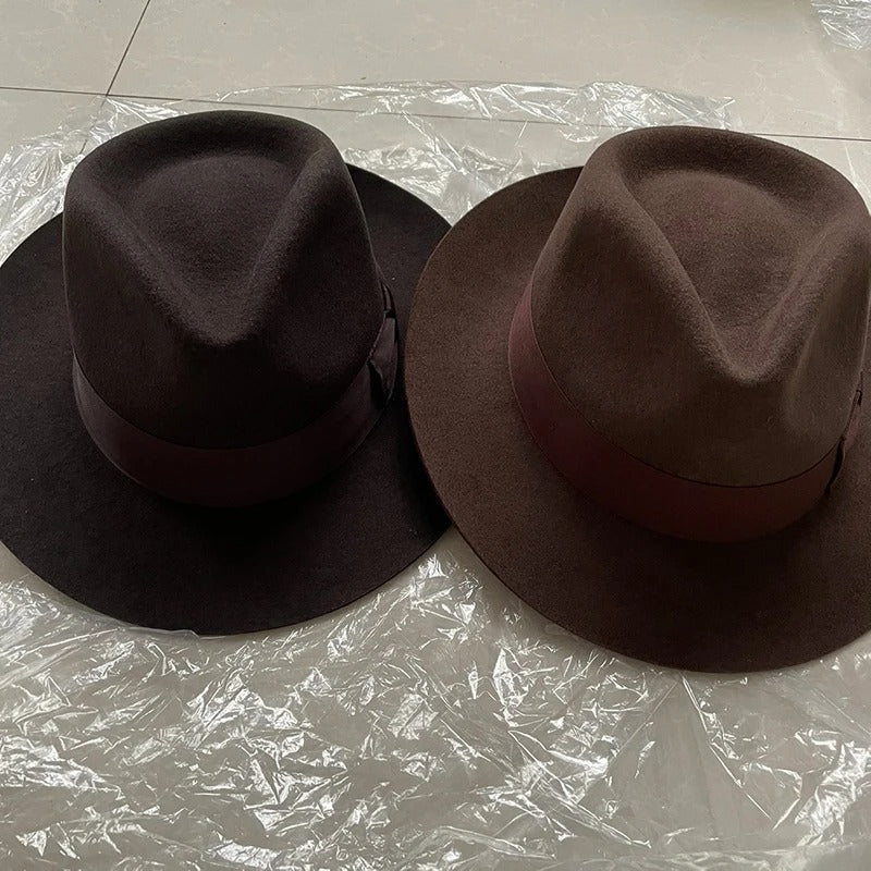 Exude timeless sophistication with the British Wool Felt Fedora Hat, a premium-quality gentleman’s hat crafted from 100% pure wool for unmatched elegance and durability. Designed with a wide raw-edge brim and structured crown, this fedora captures the refined essence of classic British style with a modern, polished edge.