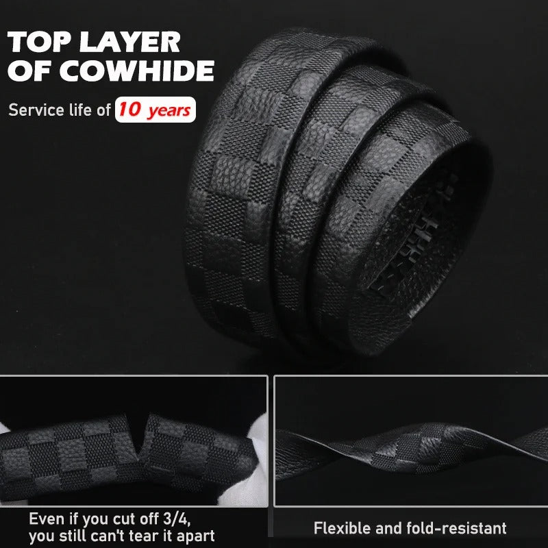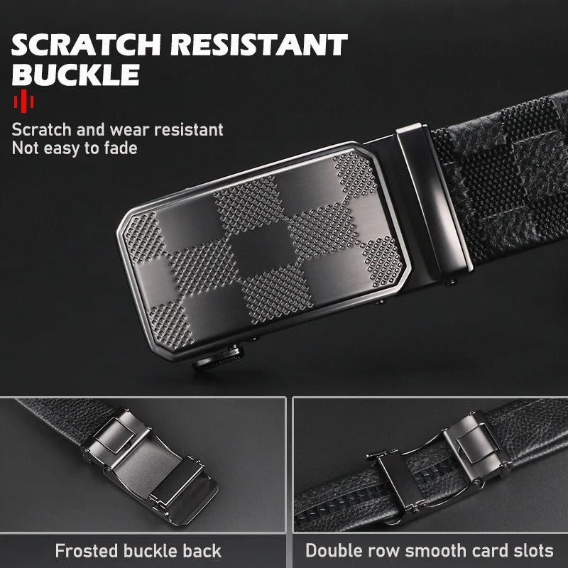 Men’s Genuine Cowhide Ratchet Belt Automatic Alloy Buckle