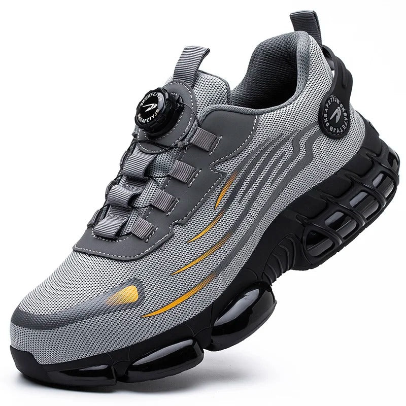 Upgrade your work gear with these men’s safety shoes featuring a rotating button quick-fit system for effortless wear. Built with a reinforced steel toe and anti-puncture midsole, they shield your feet from falling objects, sharp materials, and workplace hazards.