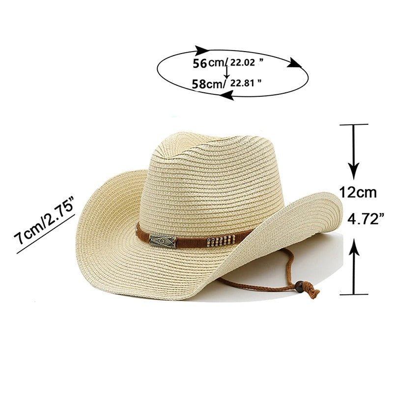 Men’s Western Cowboy Straw Hat Wide Brim Summer Cap
