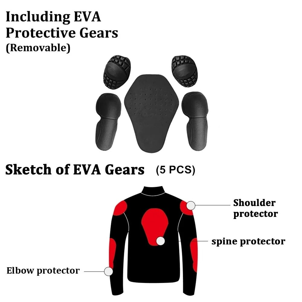 A1: The jacket includes pads for shoulders, elbows, and back protection.