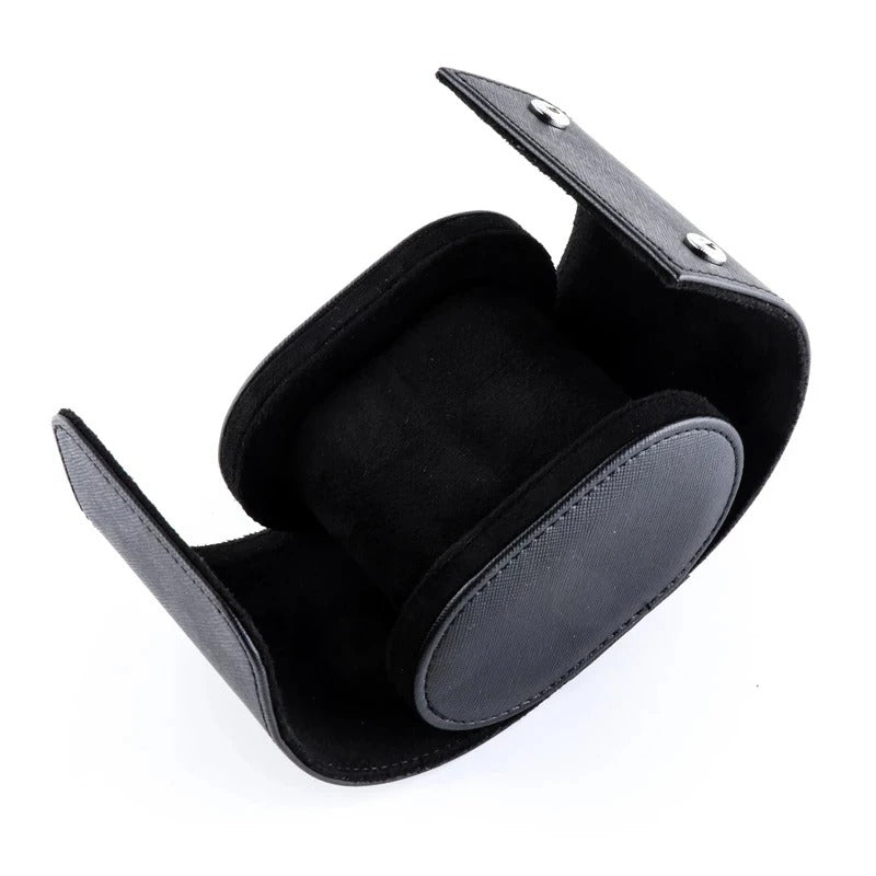 The interior features a soft flexible bracket holder that prevents scratches and damage, while the sturdy PU leather exterior ensures long-lasting use. Ideal for men’s watches, this travel-friendly case blends functionality with timeless style.